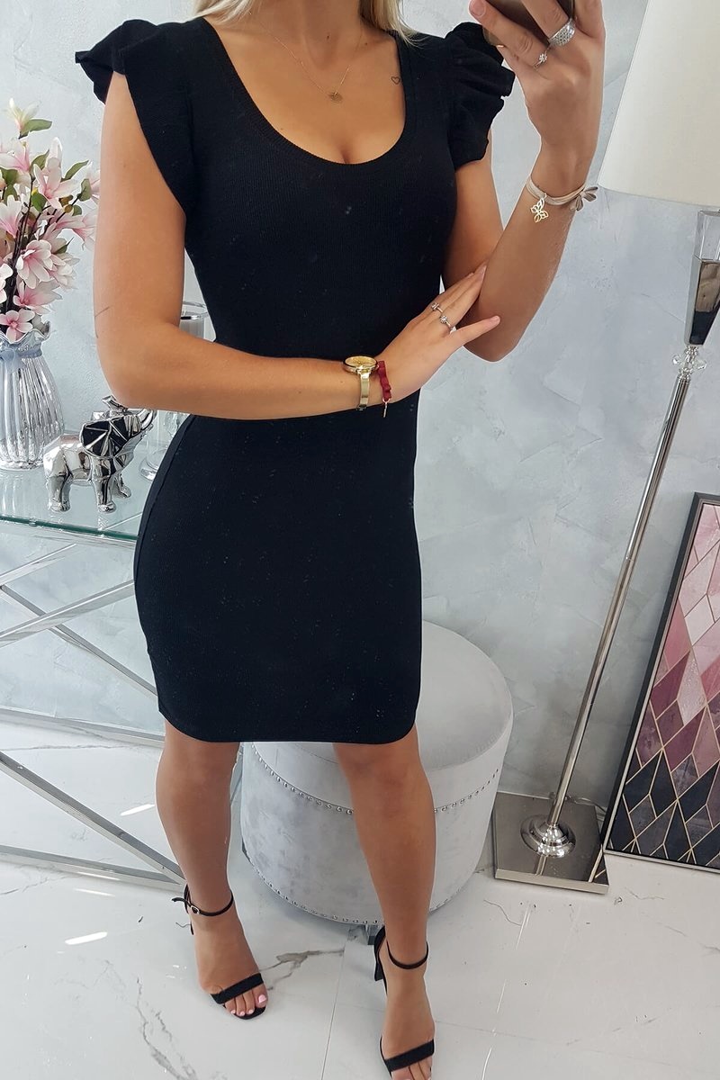Trendy priliehavé šaty s malými volánikmi na ramenách.