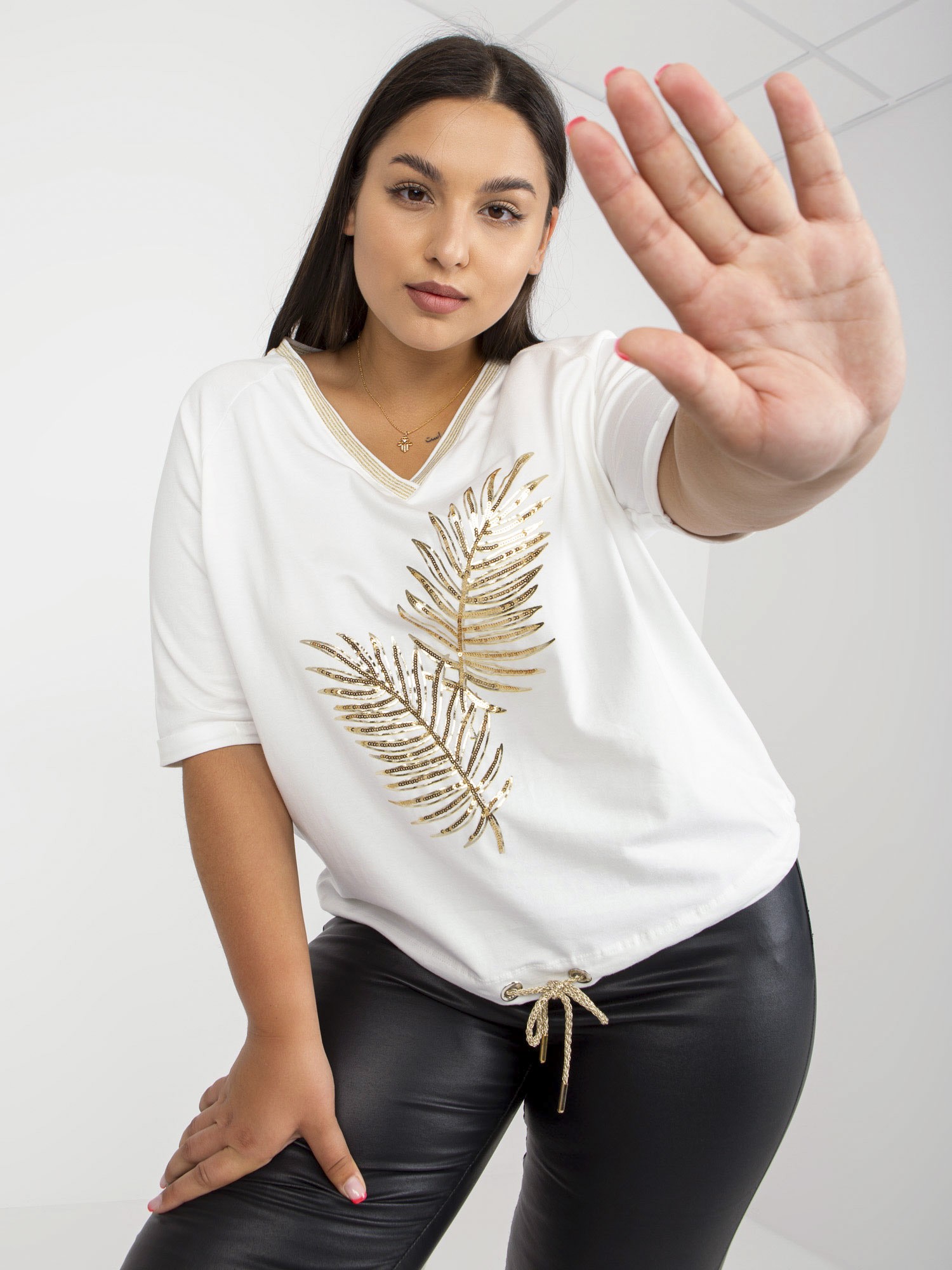 Dámske tričko s rozparkom, s krátkym rukávom. Voľný strih.