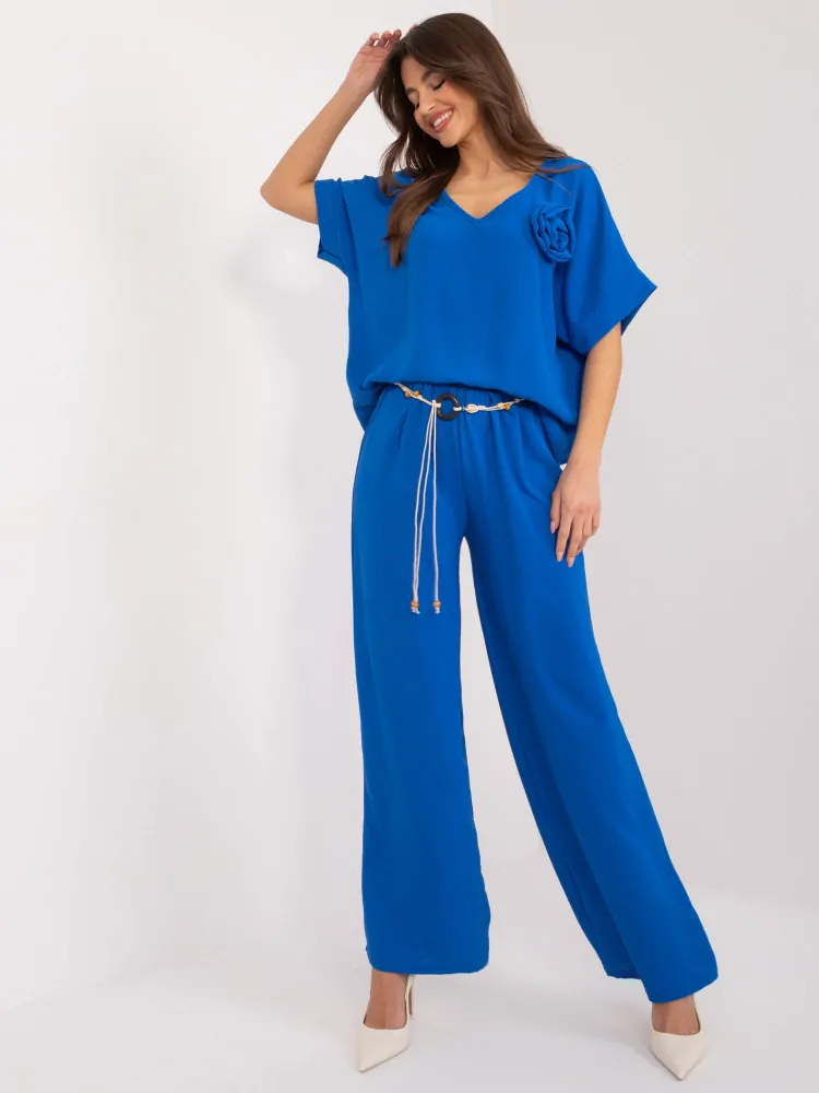Pohodlné široké nohavice, obľúbený voľný strih. Doplnené opaskom.